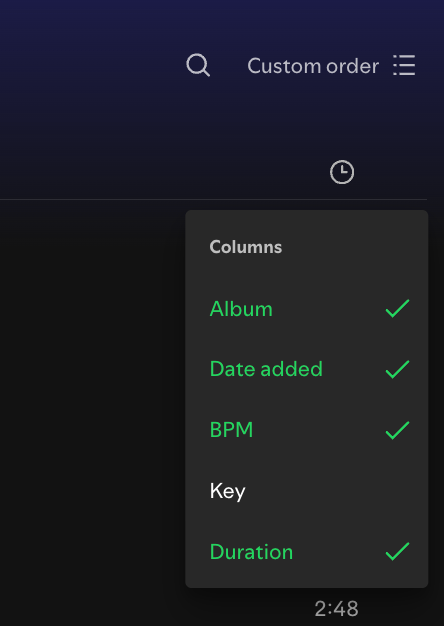 FUN FACT and PROTIP: In Spotify on the far right of the playlist, there’s a small down arrow, only visible if you hover over it next to the clock (duration) symbol. If you hit the arrow you can choose what’s displayed. If you choose BPM, you can see the beats per minute. It’s a good way to curate a walk or run playlist e.g. start at 115 BPM then gradually increase to 155 BPM. Easier than trying to guess the walk/run pace.