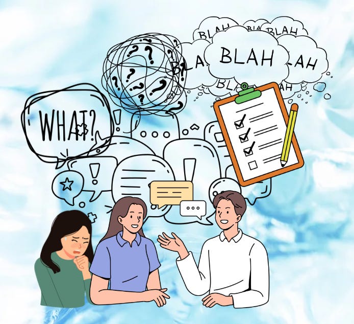 When someone uses jargon or acronyms, instead of nodding and accepting, I’ve taught myself to ask, ‘Could you please translate that into simpler words or spell out what exactly’s happening? I’m not familiar with that drug/treatment/acronym.’