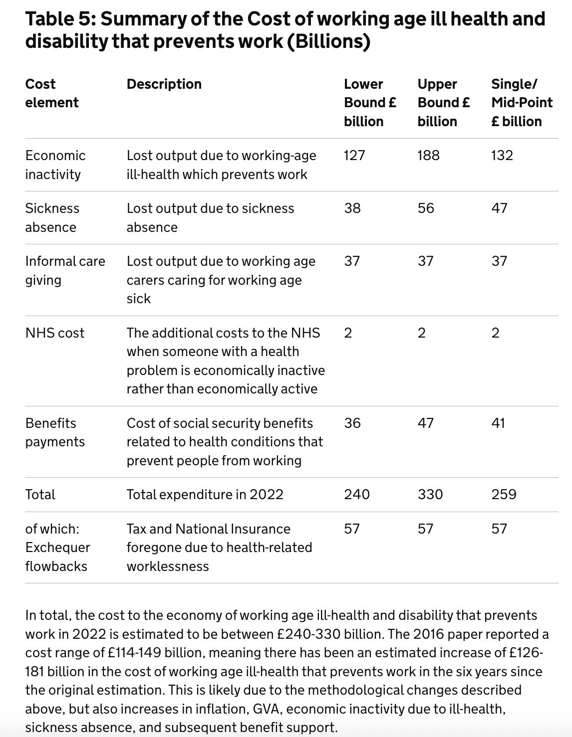 Department for Work and Pensions. Official Statistics The cost of working age ill-health and disability that prevents work Published 18 March 2025