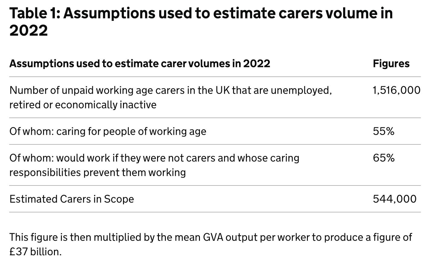 Where does this £37 billion come from? Department for Work and Pensions. Official Statistics The cost of working age ill-health and disability that prevents work Published 18 March 2025 calculated the lost output of what they’ve called a cost element of ‘informal caregiving’. Described as “Lost output due to working age carers caring for working age sick” 6 (see the footnote below)