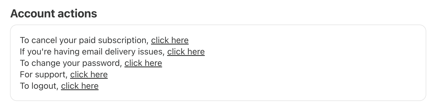 Scroll to the Account actions section of the subscription and click on the link next to “To Cancel Your Paid Subscription, Click Here”.