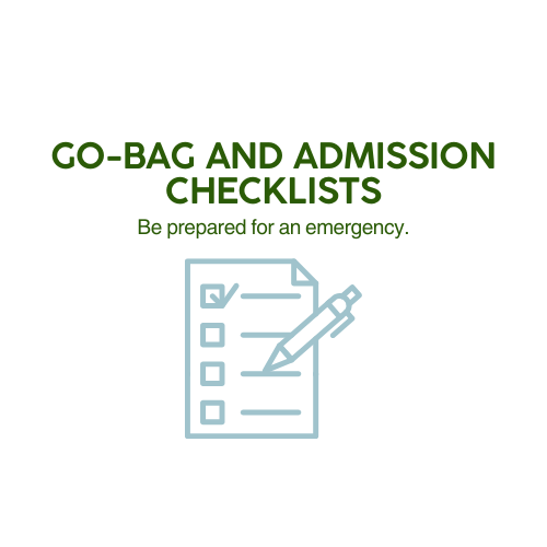 Click here to sign up to receive âGo-Bag and Admission Checklists.â This contains 3 checklists that you can download for free using this link